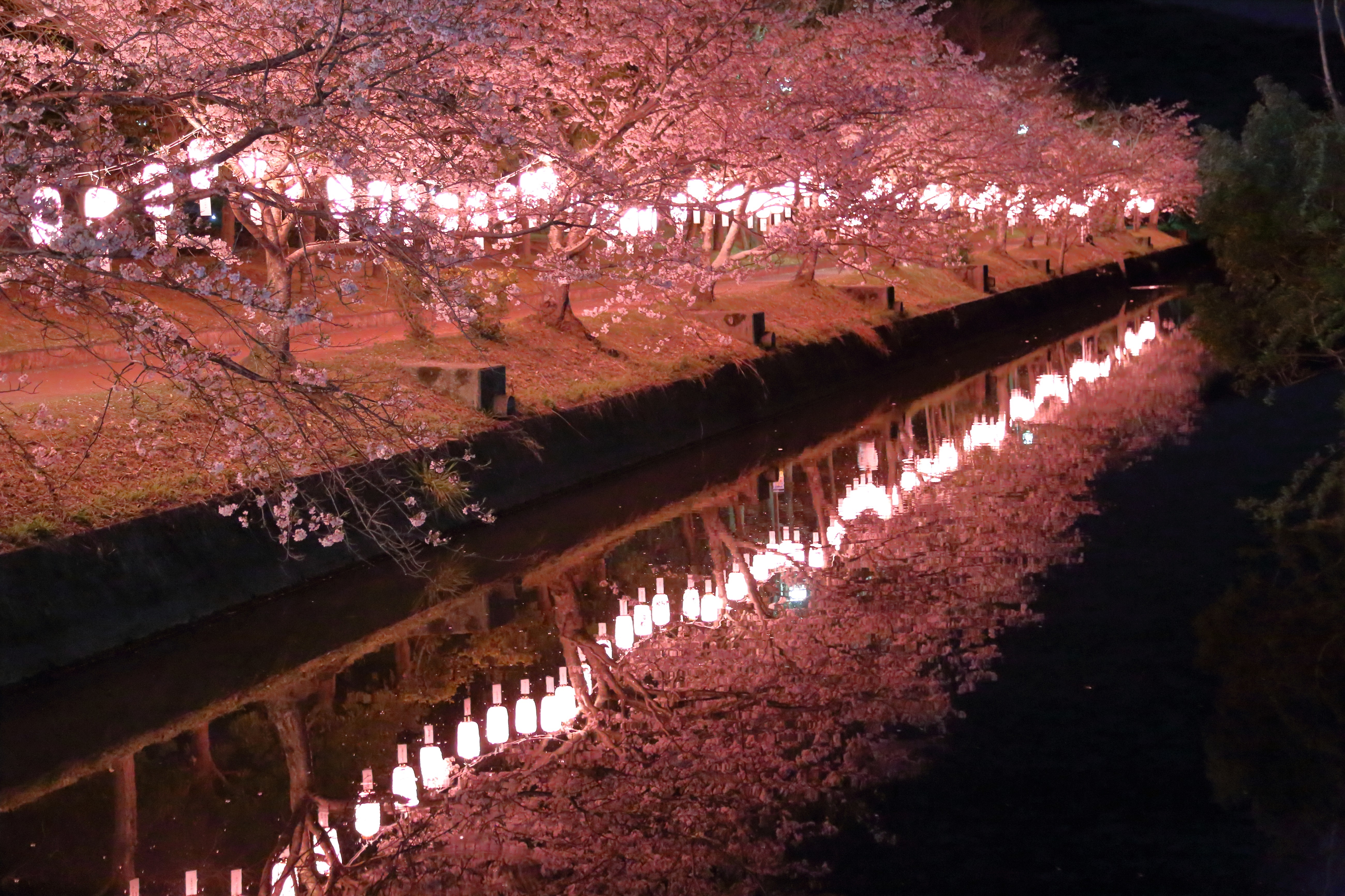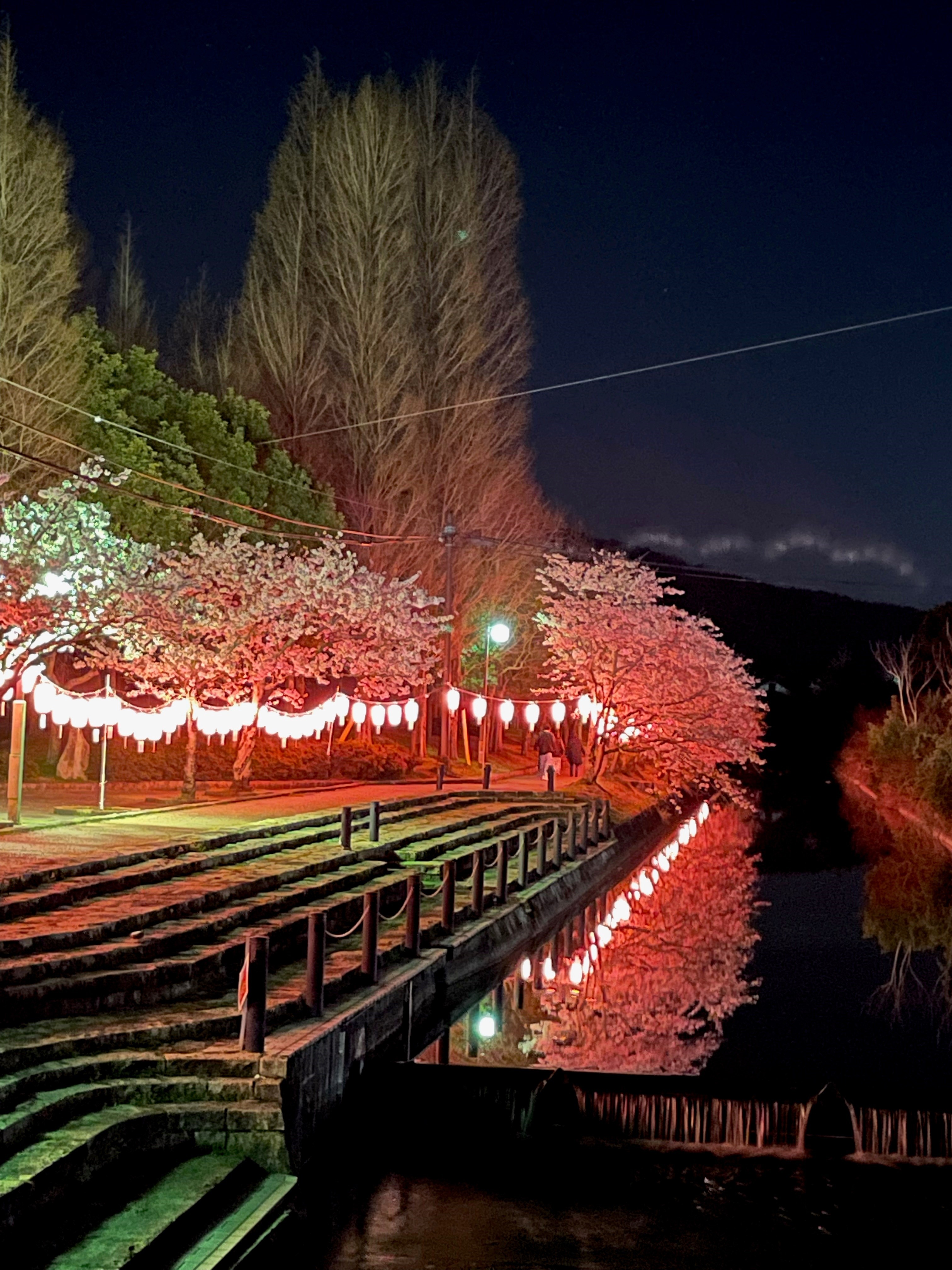提灯の灯りが妖艶な姿を大同川水面に浮かび上がらせてくれました。